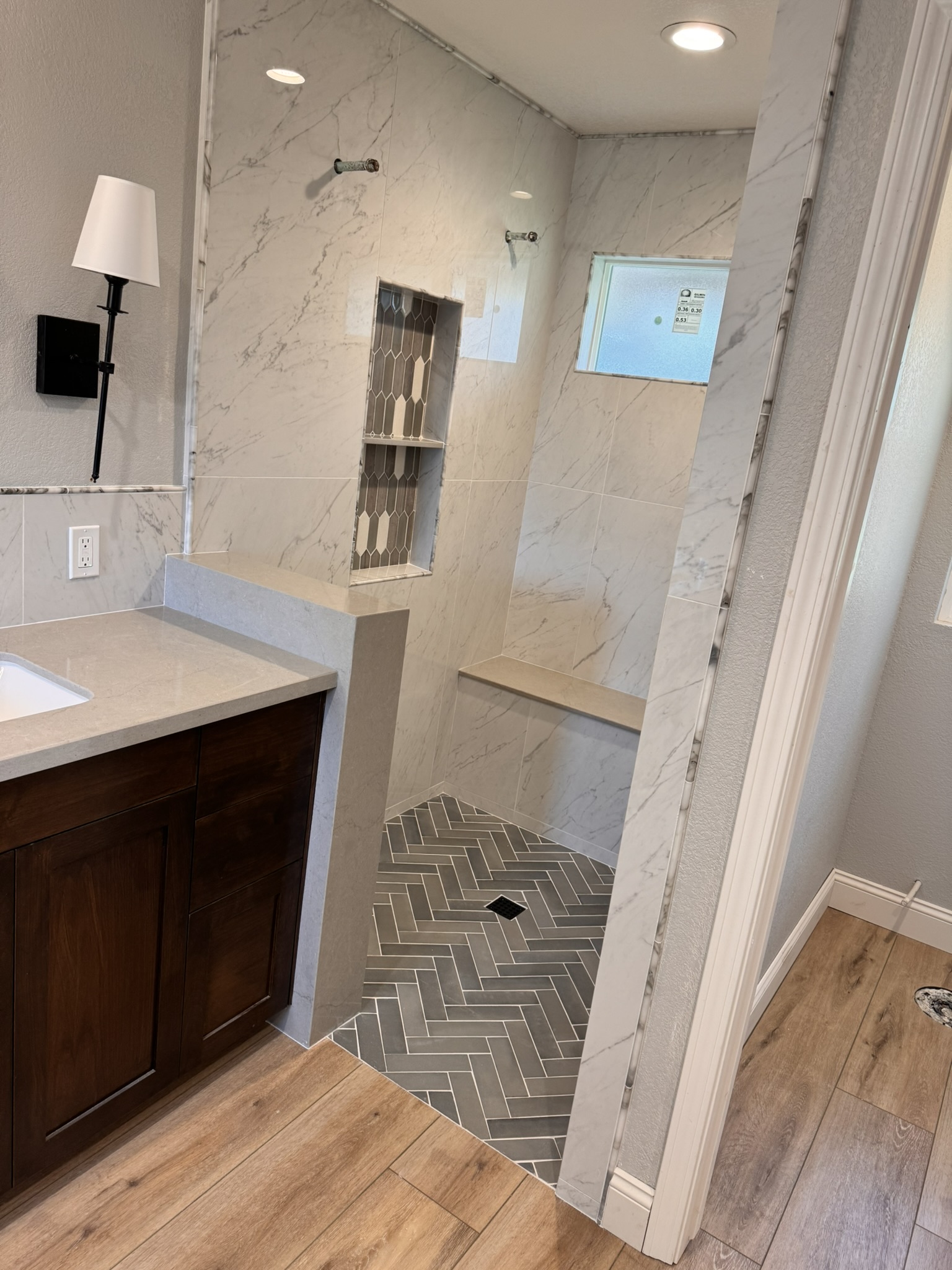 Your home will look like we were never there. Relationships and care are taken seriously at Baker Tile. We use plastic & cover on your home and keep dust to a minimum. Remodels are our specialty. We do custom kitchens, baths, flooring and countertops.